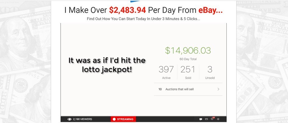 After sitting through another hyped-up sales video showing how he makes thousands every week on eBay. Again, the paid testimonials from the Fiverr actors promoting the product. Somehow, I managed to sit through the entire thing, it seemed like it took an hour, but I think it was only several minutes.
